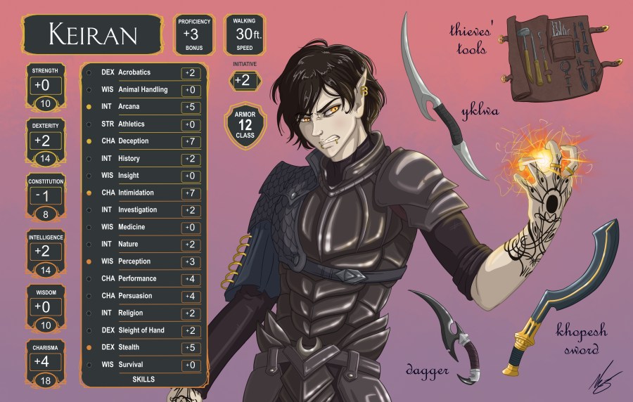 Character Sheet Asthetic Art Keiran Azael 2 Lv5